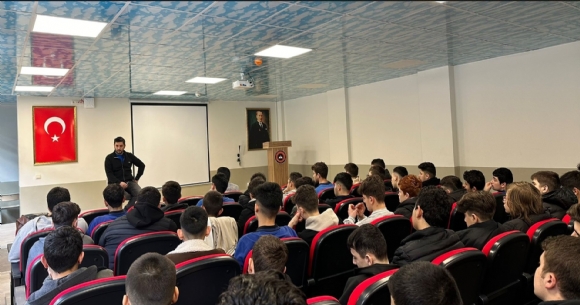 Okulun eski öğrencilerinden Engin Sever, kariyer günleri kapsamında öğrencilere tecrübelerini aktardı.